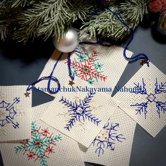 完成した刺繍は プレゼントタグやクリスマスオーナメントにアレンジして楽しんでください